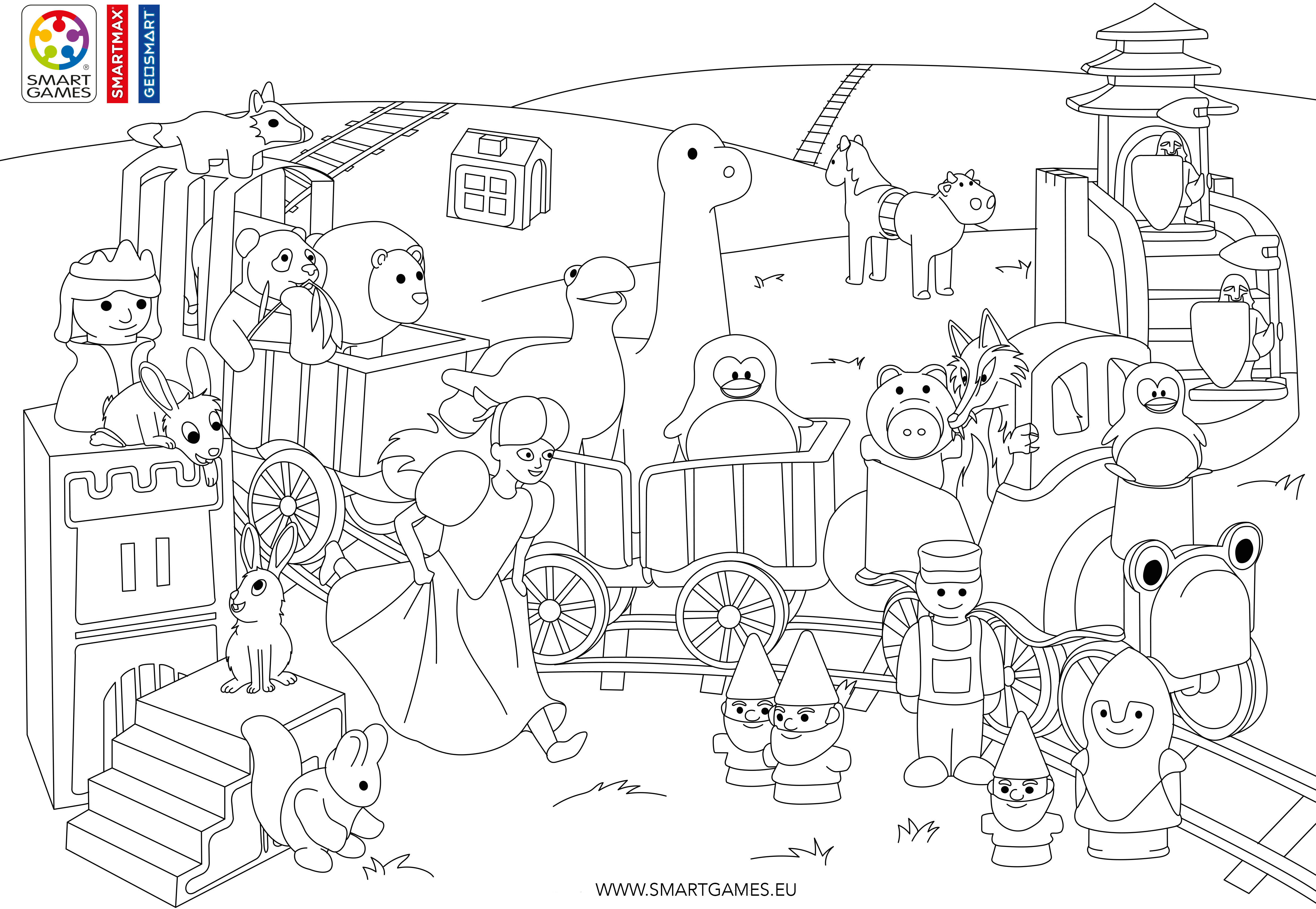 Do your children like colouring? Download our free colouring page here. On this colouring page, you'll find Smartgames fun figures, animals, fairy-tale characters and so much more. This colouring picture appeals to every child's imagination. Have fun with it!