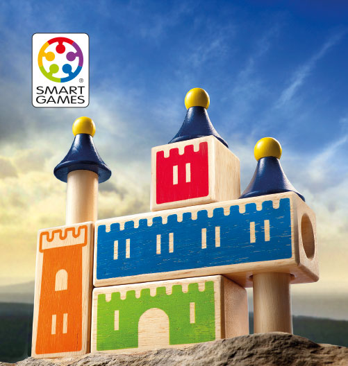 Construct castles, block by block and tower by tower, as you flex your logic muscles with this beautifully crafted 3-D wooden puzzle. The challenge is to assemble the wooden blocks and towers to build one of the castles in the included puzzle booklet. The 3 towers have sticks of different length and the blocks have holes, but not always in the same direction. Where do you need to place the longest tower?