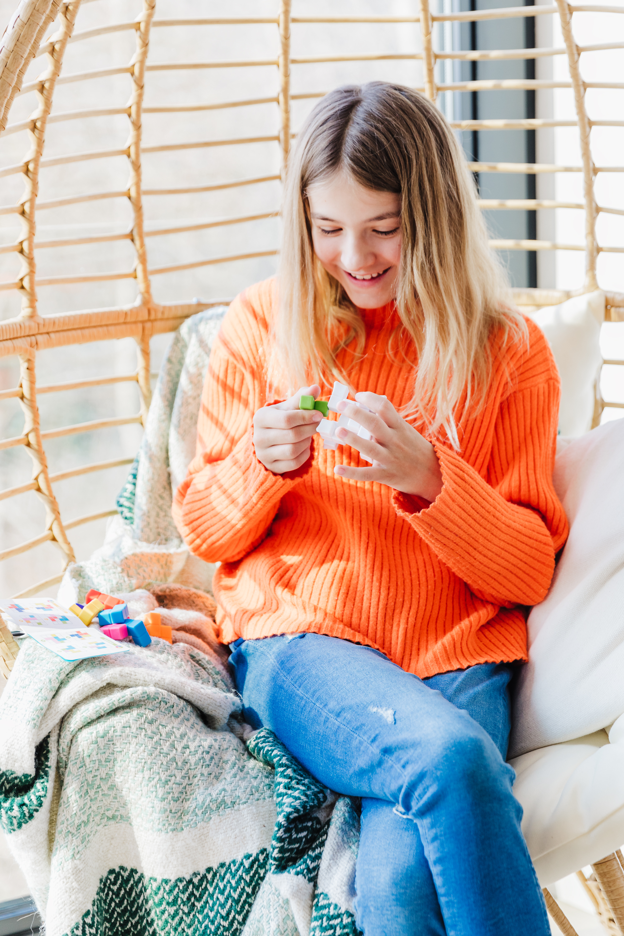 This little cube is packed with fun. Remove the 8 colourful puzzle pieces and try to fit them back in. No setup required, just plug and play! Sounds simple? There are more than fifty ways to complete this cube, but finding the right one might be tricky! This 3D-puzzle doubles as a fidget cube and includes 48 challenges, from easy to expert.