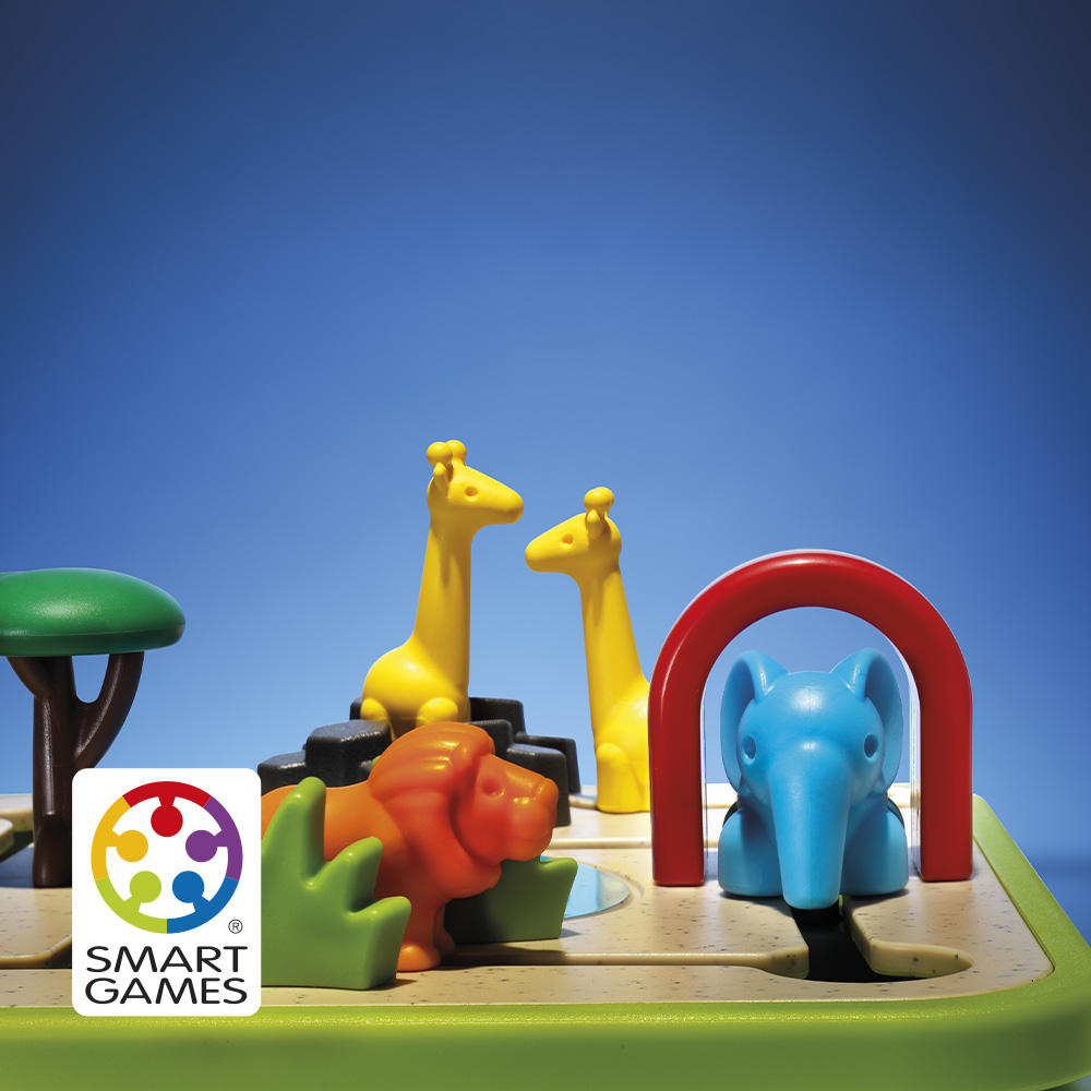 - Inside the Box1 game board, 1 lion, 2 giraffes, 1 elephant, 60 challenges.