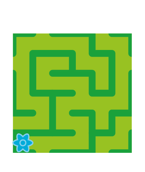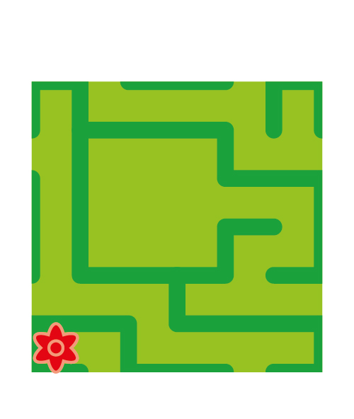 Select a challenge. Place the 4 maze pieces inside the border of the game board as shown in the challenge. Each maze piece features a flower with a different color in one of the corners to help you place it in the correct position.